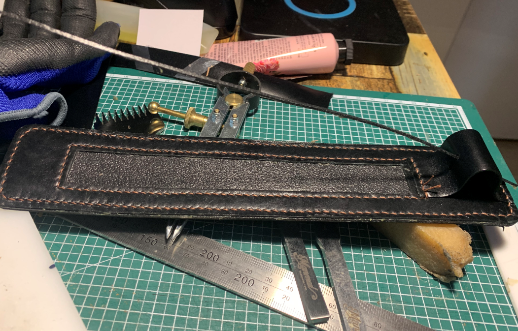 가죽의 테두리 부분을 보면 본드가 뭉쳐져 있는 것을 확인할 수 있다. 이러한 이유는 내가 지금 사용하고 있는 본드가 좀 많이 굳어졌기 때문에... 저렇게 보기 흉하게 뭉쳐졌다.