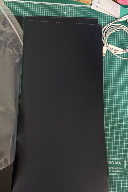 원래는 실 색을 좀 밝은 색으로 하고 엣지를 어둡게 갈려고 했는데, 아무래도 바느질이....스티치 실력이 미천하다보니