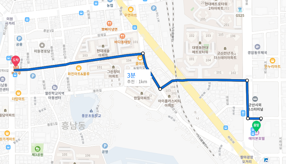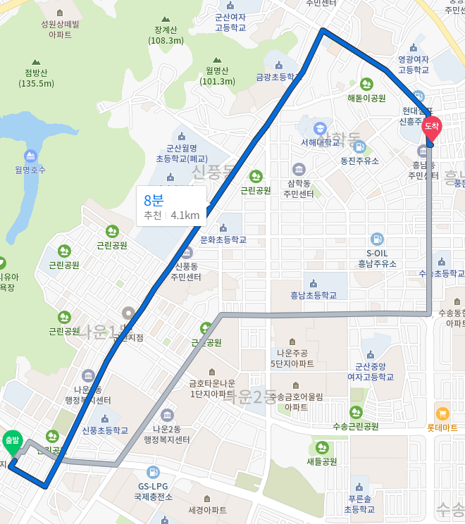 또한, 군산 여행할때 가장 많이 다닐 월명동과도 거리가 멀지 않다.