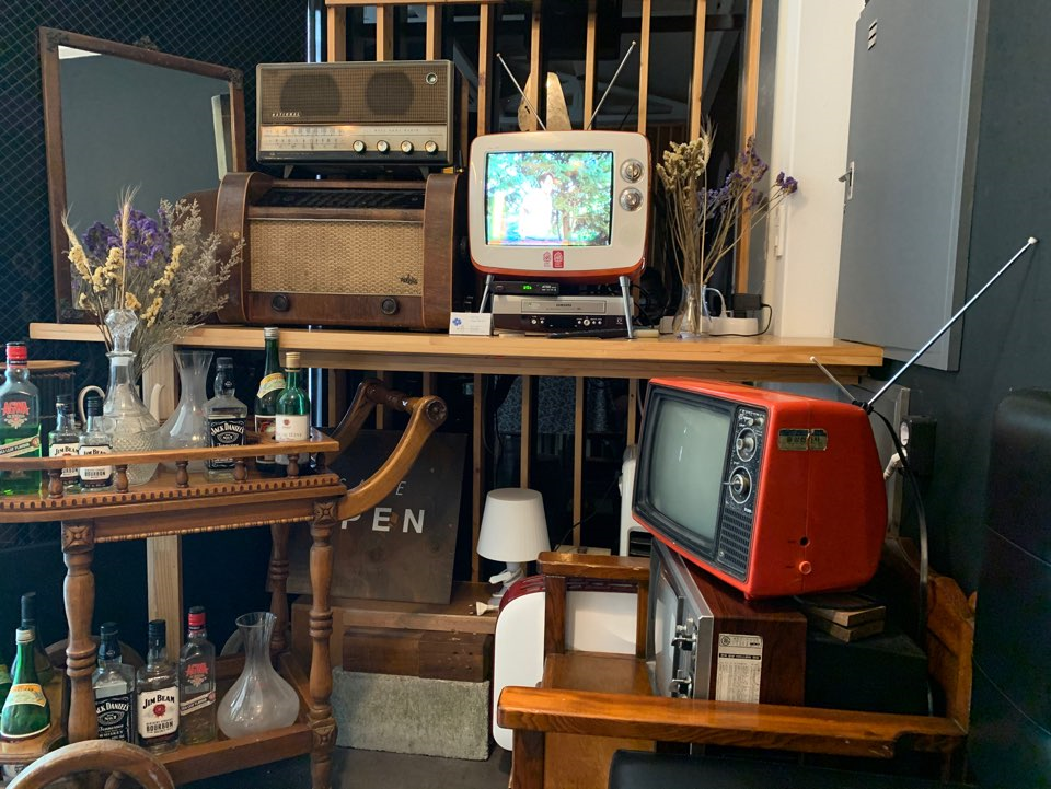 문 옆에는 오른쪽 사진처럼 레트로한 제품들이 있는데, 실제로 사장님이 저런 레트로품들 모으시는 게 취미라고 한다.
