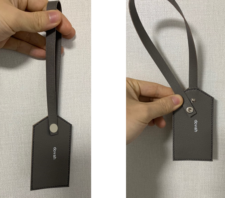 실제로 가방에 착용해본 사진인데, 저때는 스티치나 엣지 마감이 안되어있다.