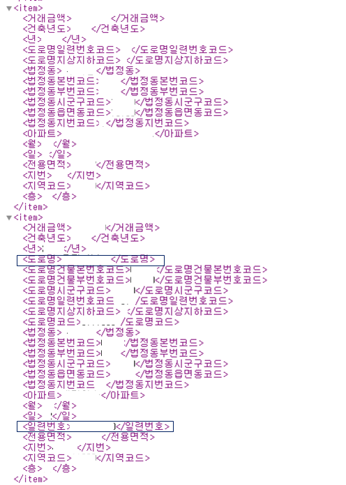 상위 노드인 'item'을 활용하면 될 것 같았는데, 이상하게 잘 안되었다.