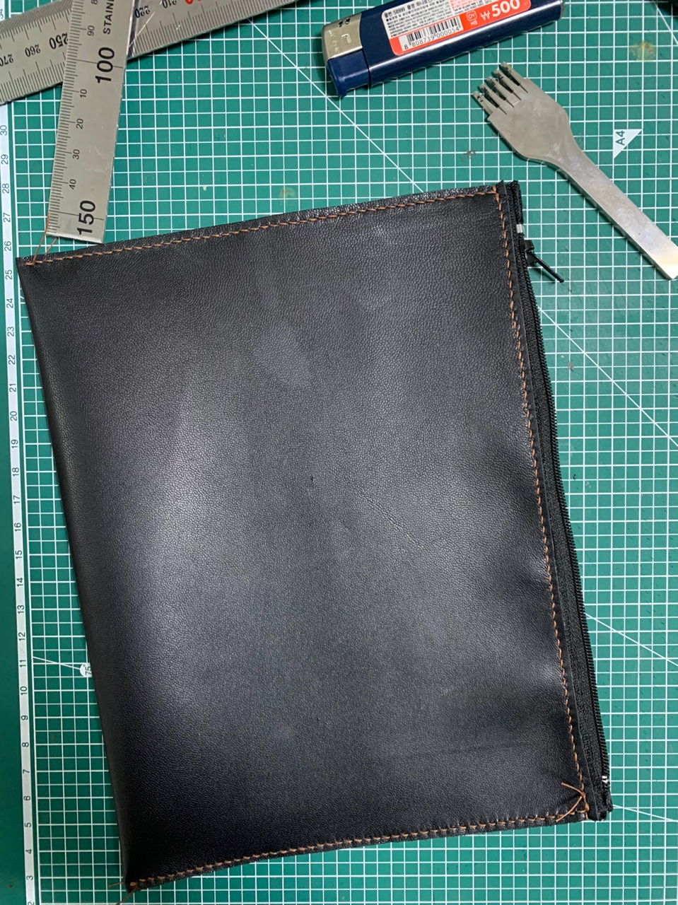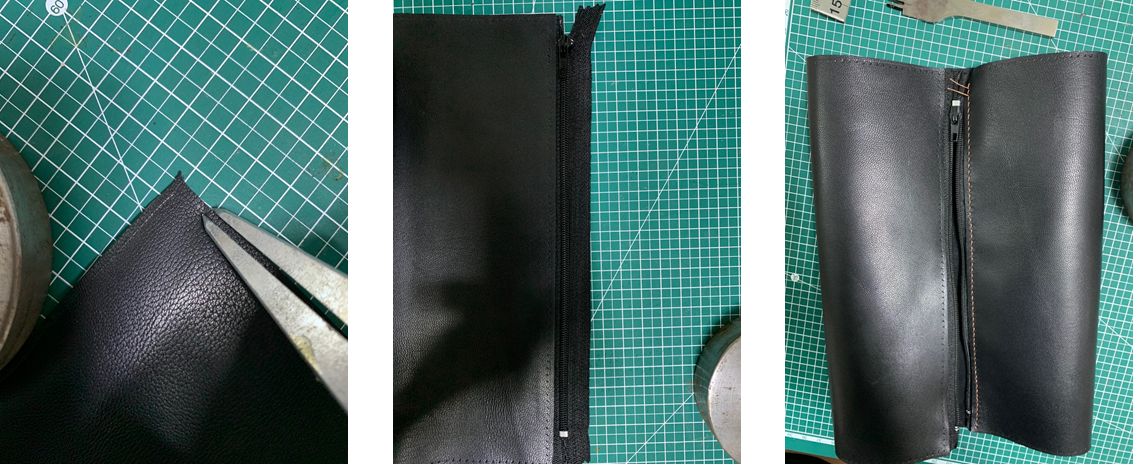 앞서 언급했듯이 나는 지퍼보다 가죽의 길이가 길어서 지퍼작업을 별도로 하지 않았는데,