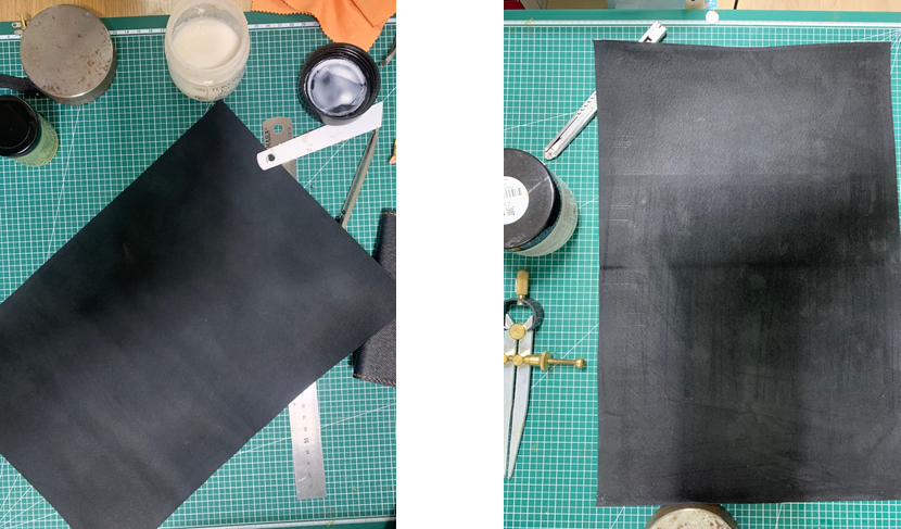 패턴 사이즈에 맞춰서 재단한 후에 이번엔 안감 대신에 토코놀을 칠해서 마감 처리를 했다.