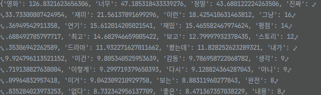 여기서 중요한 것은 'keywords'인데, 해당 결과는 dict형태로 '단어':점수로 구성되어있다.
