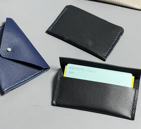 이번에 만들 카드지갑은 위에 보이는 것처럼 덮개 있는 걸로 한 손으로 쉽게 열고 닫을 수 있다.