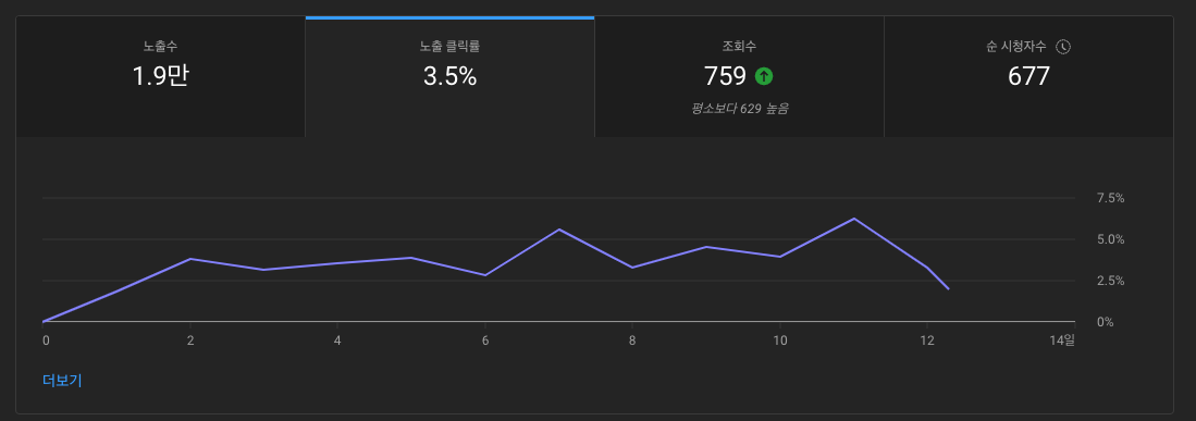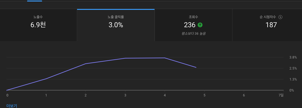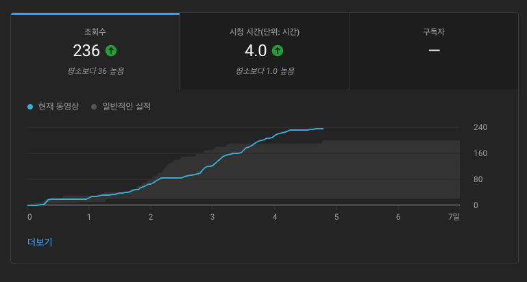 업로드 이후 2일차가 되는 즈음에 상승을 이루다가 3일차에 빠르게 증가한 것을 알 수 있다.