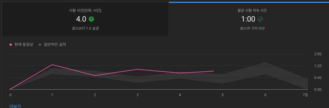 조회수가 낮았던 1일차에 시청 지속시간이 평균보다 높은 것은 당연한 것이다.