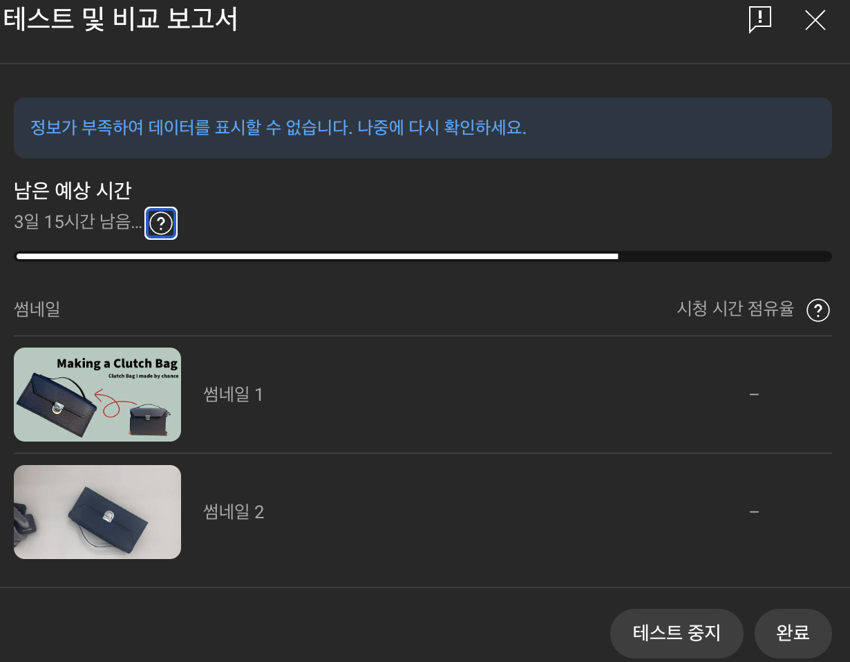 그나마 다행인 점은 유튜브에서 썸네일 테스트 기능을 업데이트 해준 것이다.